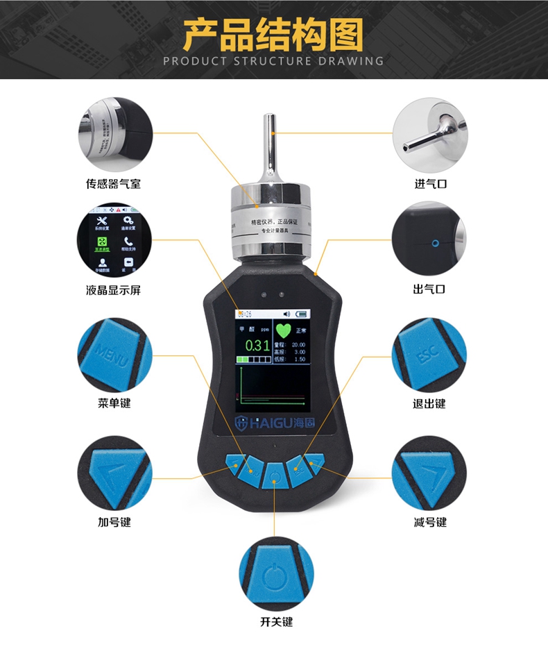 海固HG-BX-C7H8 彩屏泵吸便携式甲苯气体;