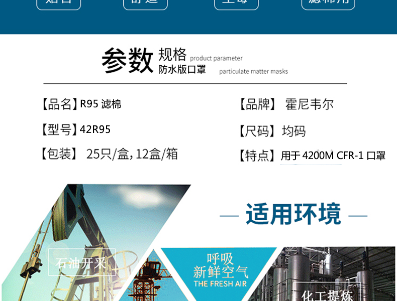 N95用于防护非油性颗粒物,R95用于防护油性和非油性颗粒物。