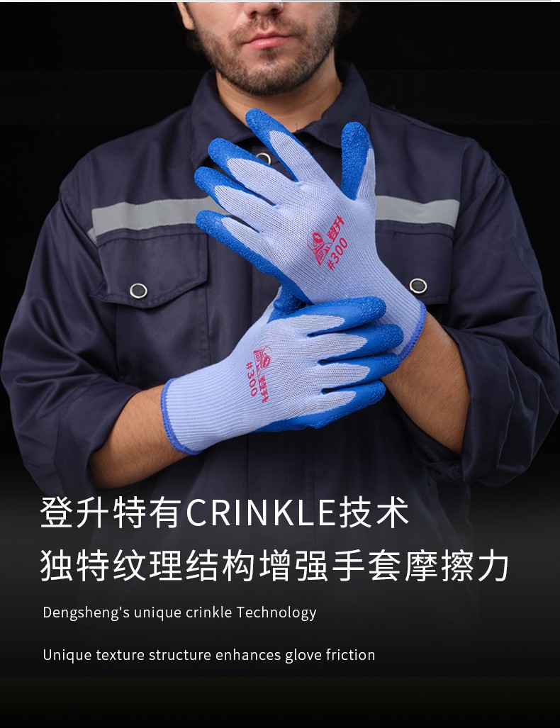 登升特有的CRINKLE技术,独特的纹理结构增强了手套的摩擦力和抓握性能;