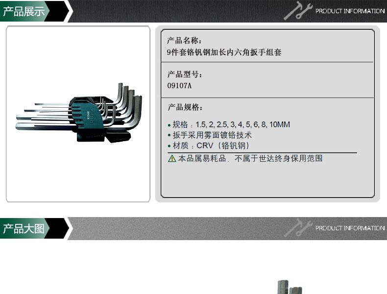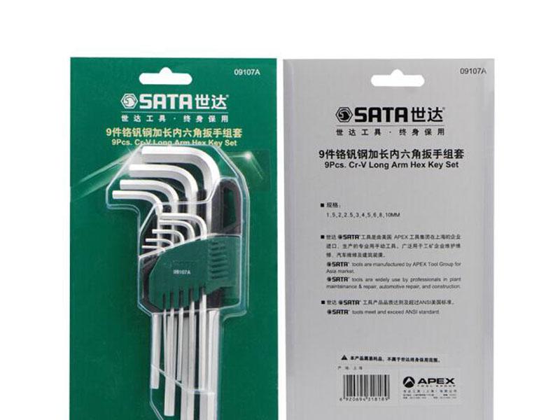 世达09107A 9件套铬钒钢加长内六角扳手。