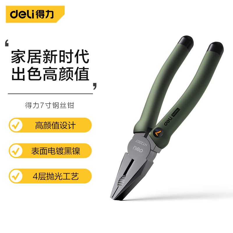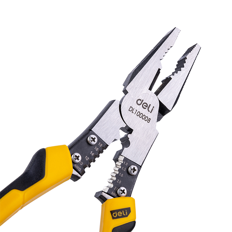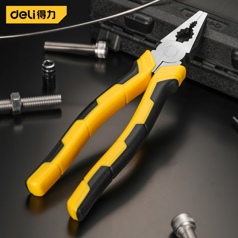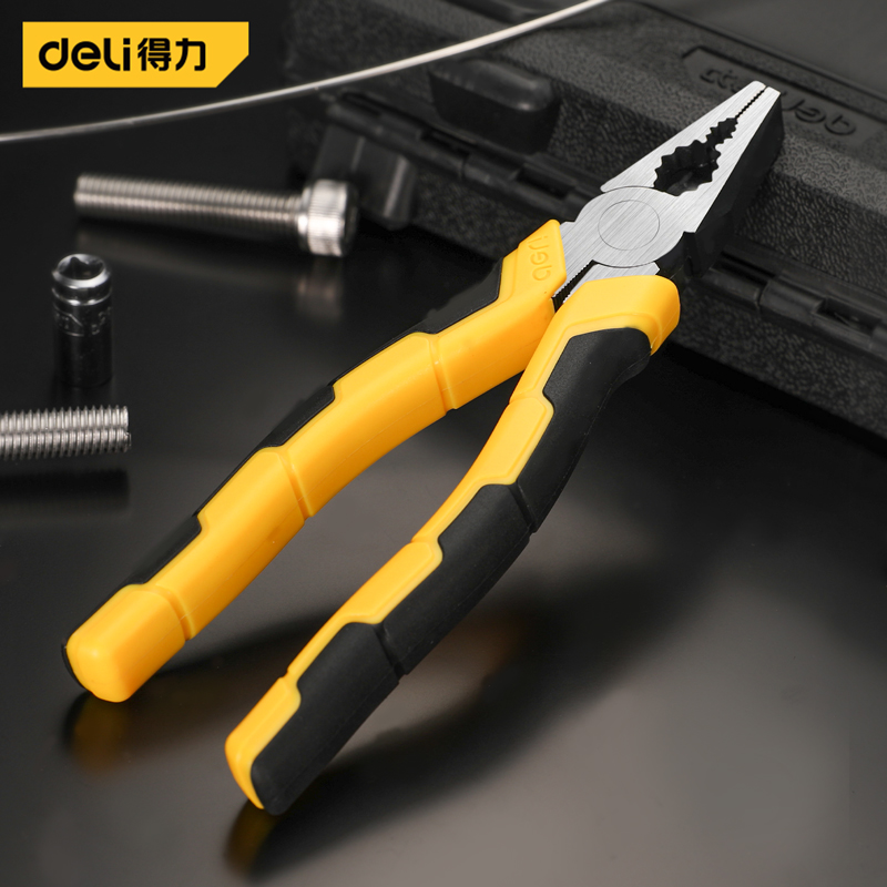 得力工具 多功能钢丝钳省力型铬钒钢(黄)