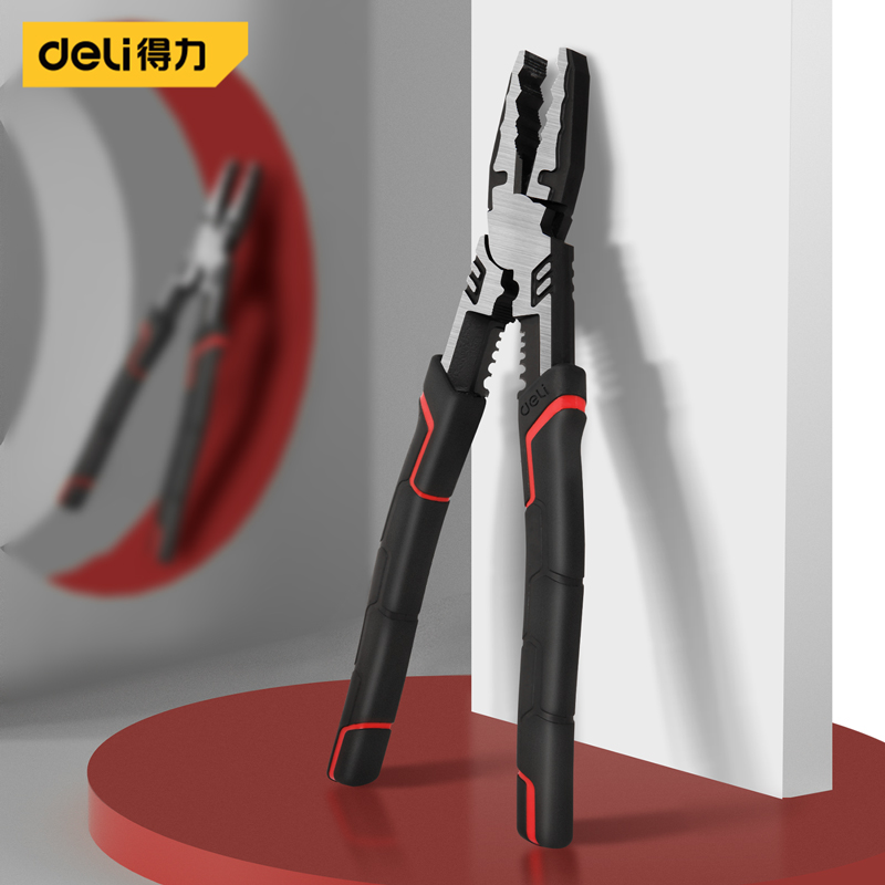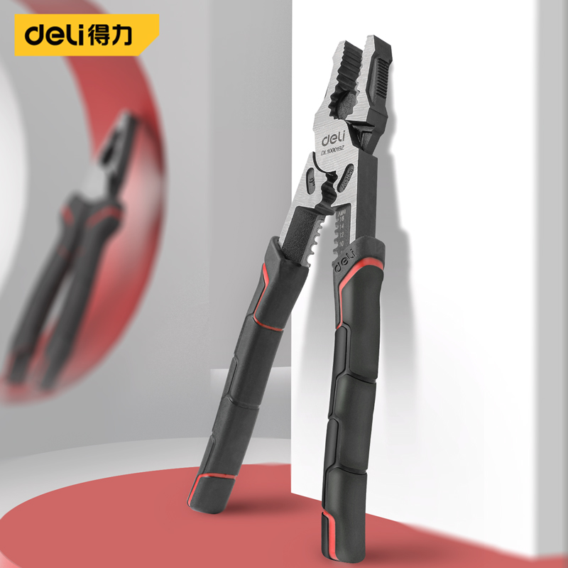 得力工具 多功能钢丝钳省力型高寿命铬钒钢带剥线(红)