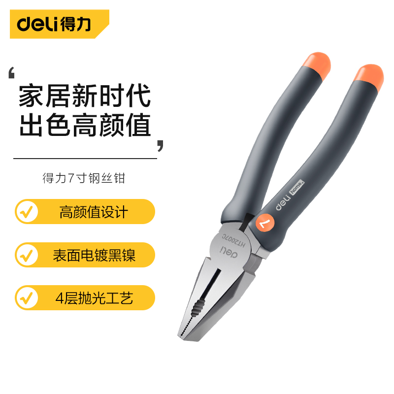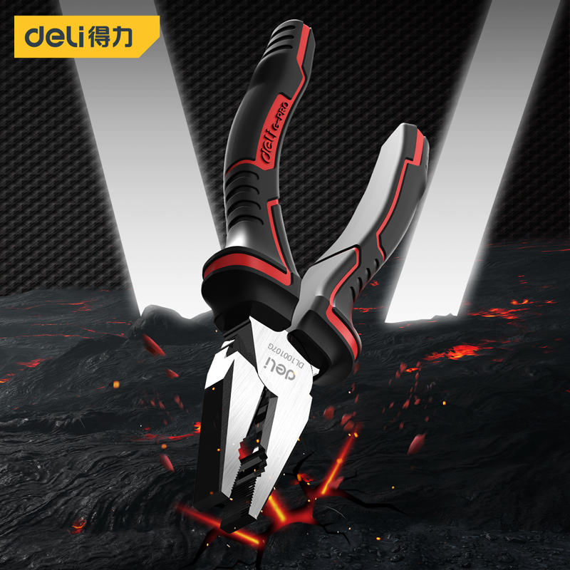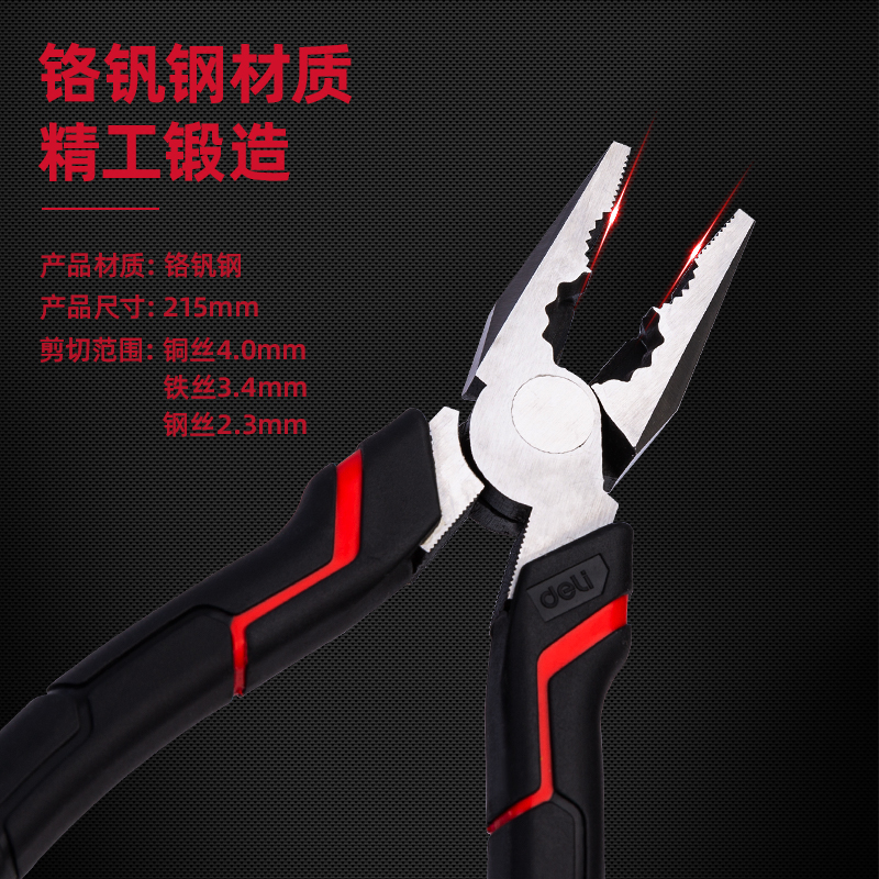 得力工具 日式钢丝钳省力型高寿命铬钒钢(红)