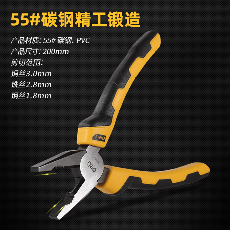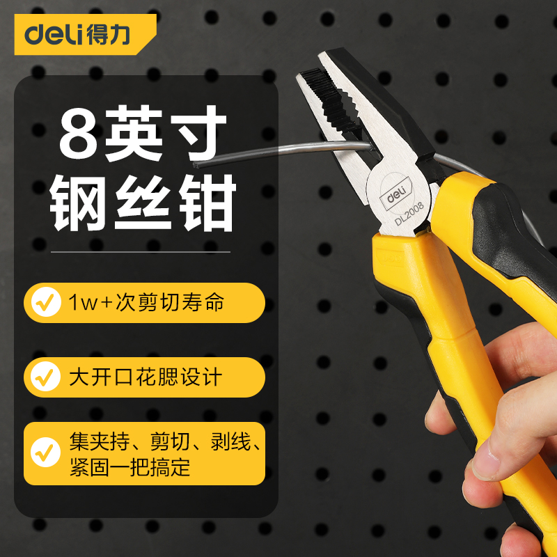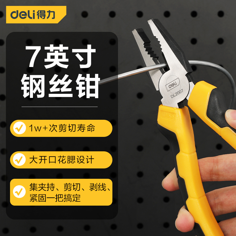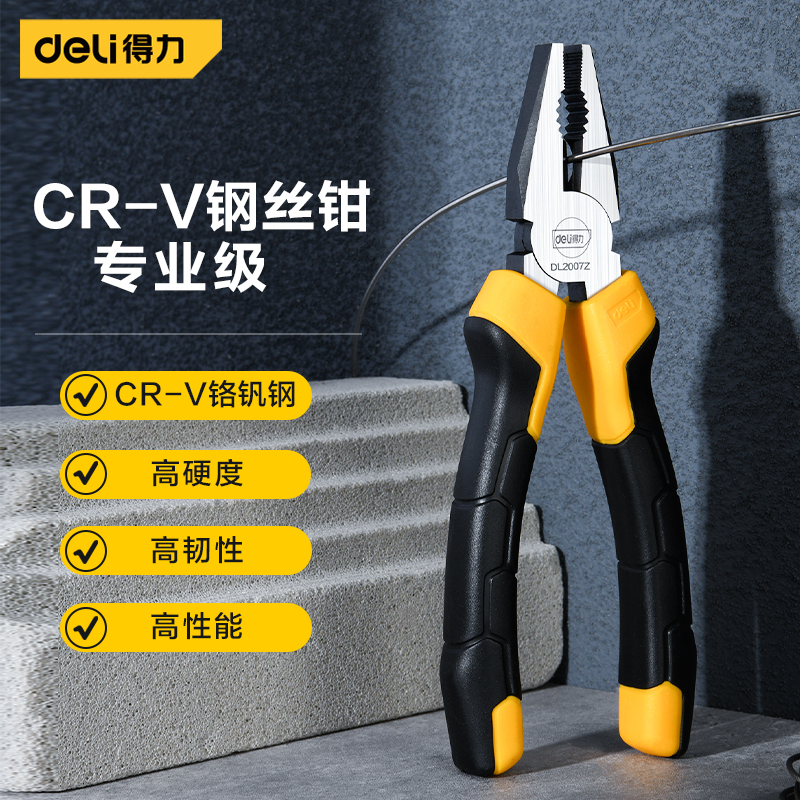 得力工具 专业级德式钢丝钳铬钒钢(黄)