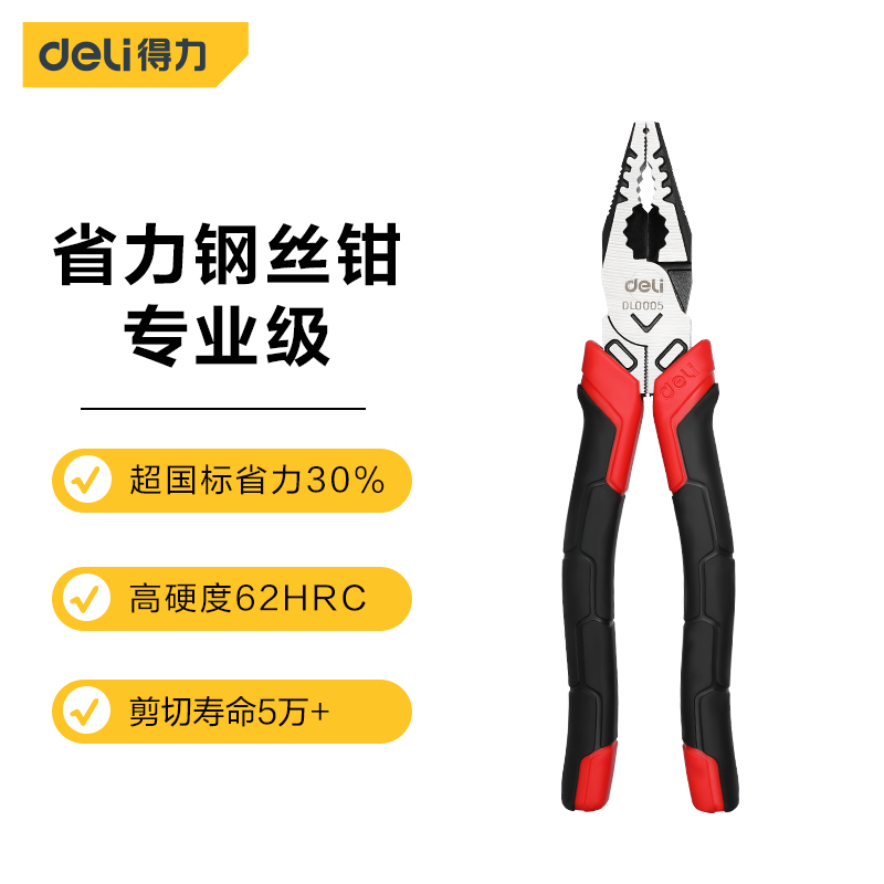 得力工具 专业级德式钢丝钳省力型铬钒钢(红)