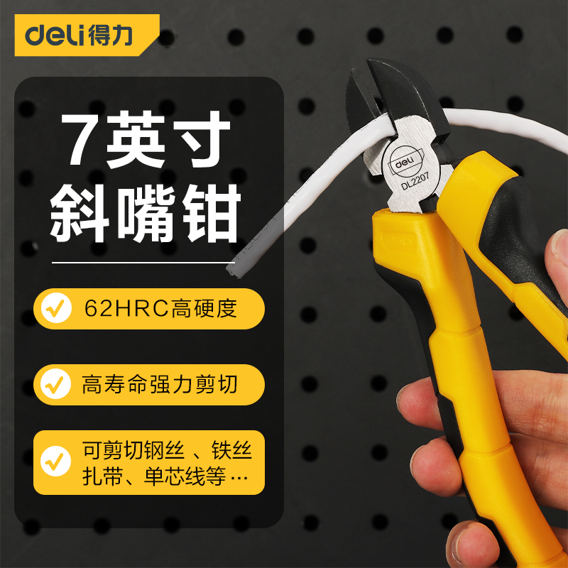 得力工具 德式回弹斜嘴钳刃口升级(黄)