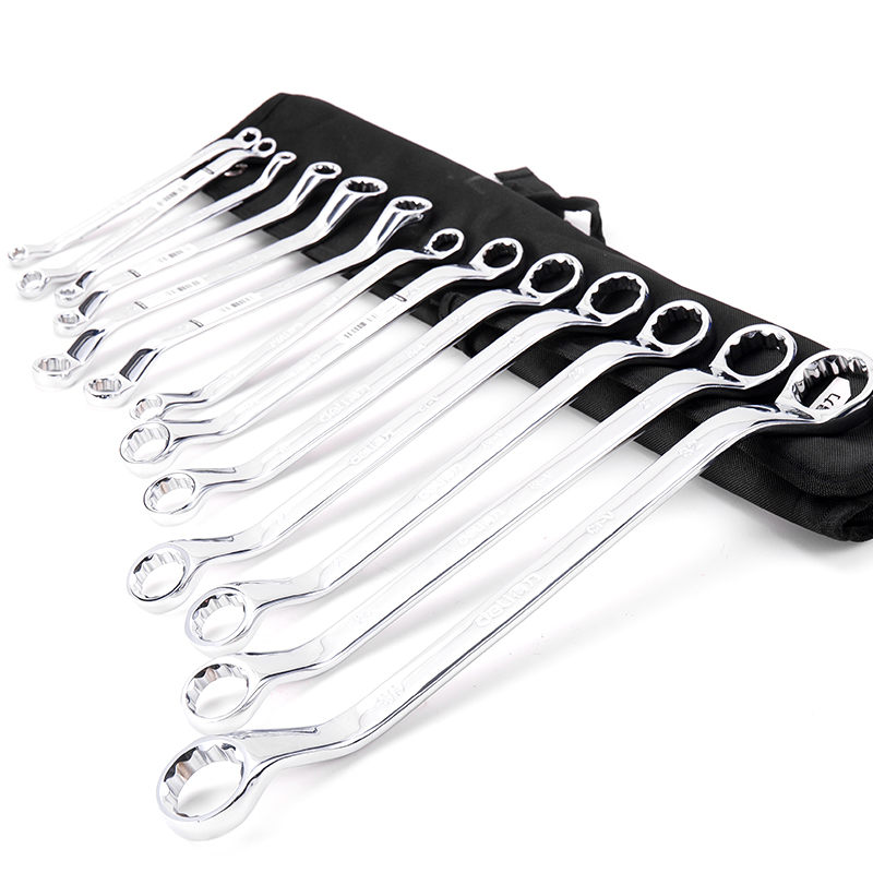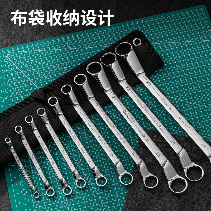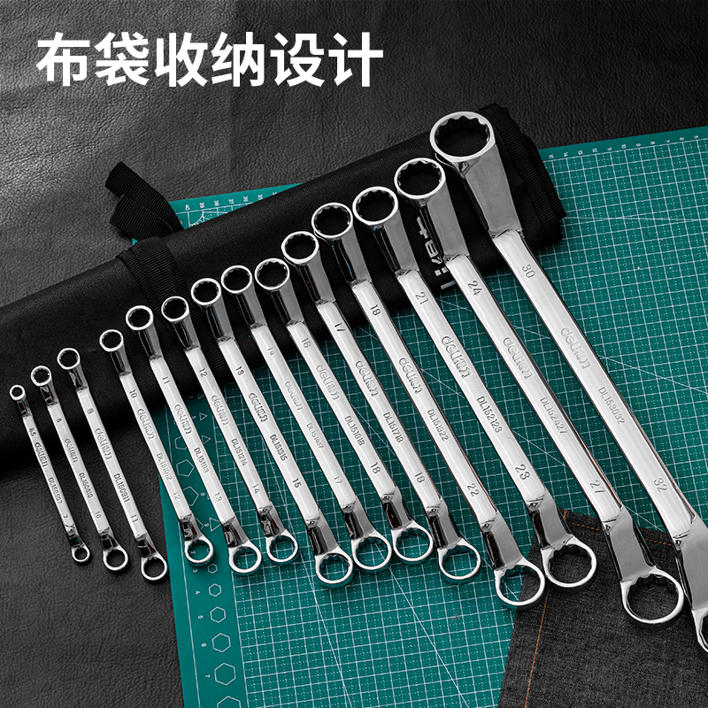 得力工具 (终保)镜面双梅花扳手套装布包铬钒钢(银)
