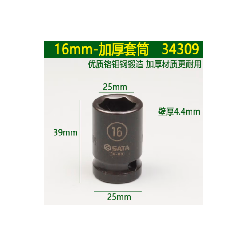 世达工具 34309 1/2"系列六角风动套筒16MM