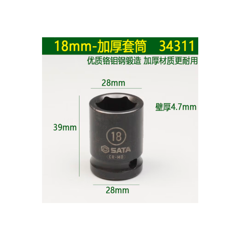 世达工具 34311 1/2"系列六角风动套筒18MM