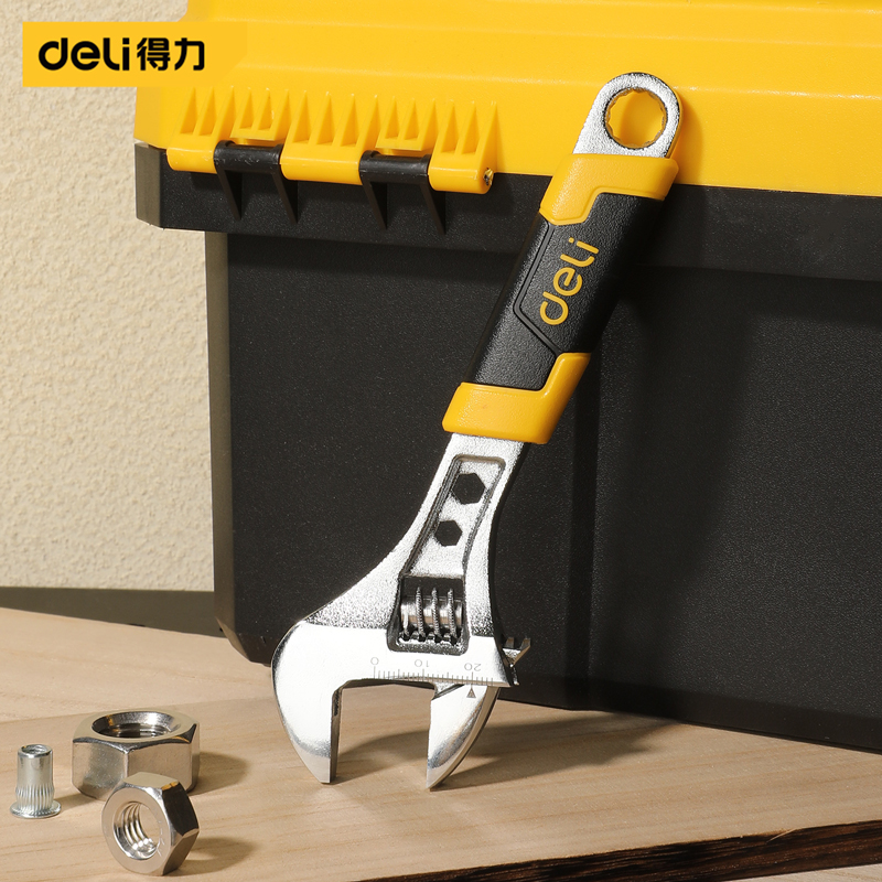 得力工具 管活两用活扳手塑柄(黄)