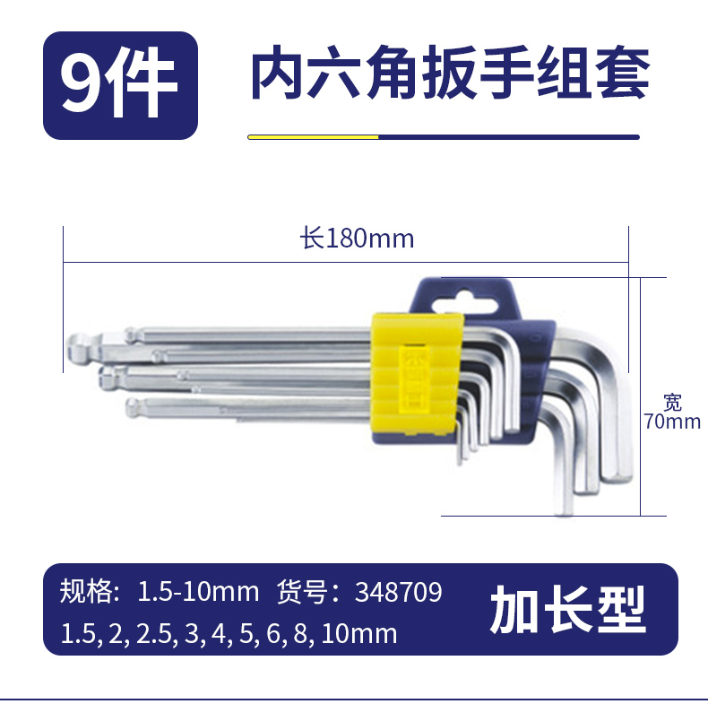 • 铬钒钢制作,硬度高,扭矩大,韧性好, 坚固耐用。 • 球头设计 , 方便 25°倾角内使用。 • 表面电镀铬处理,美观大方,不易生锈。 • 具体规格:1.5, 2, 2.5, 3, 4, 5, 6, 8, 10mm