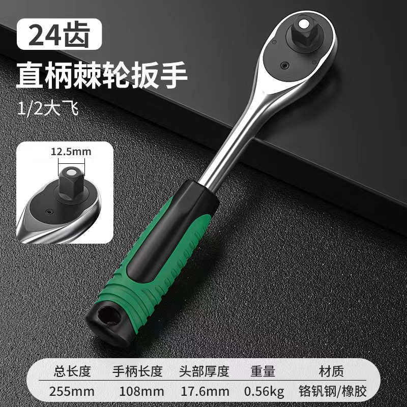 全杰工具1/2快速扳手 QJ003 大飞快速套筒扳手 24齿直柄棘轮扳手 双向快脱棘轮扳手