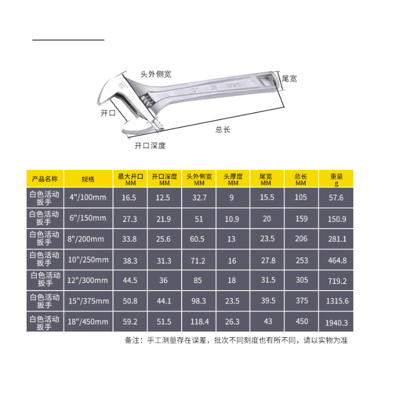 波斯 BS361212 活动扳手工业级汽修机修扳手