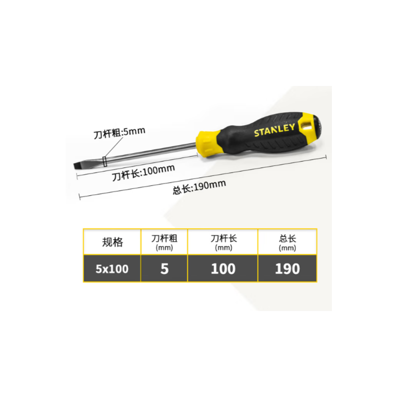 史丹利 60-822-23 B系列胶柄一字螺丝批5x100mm