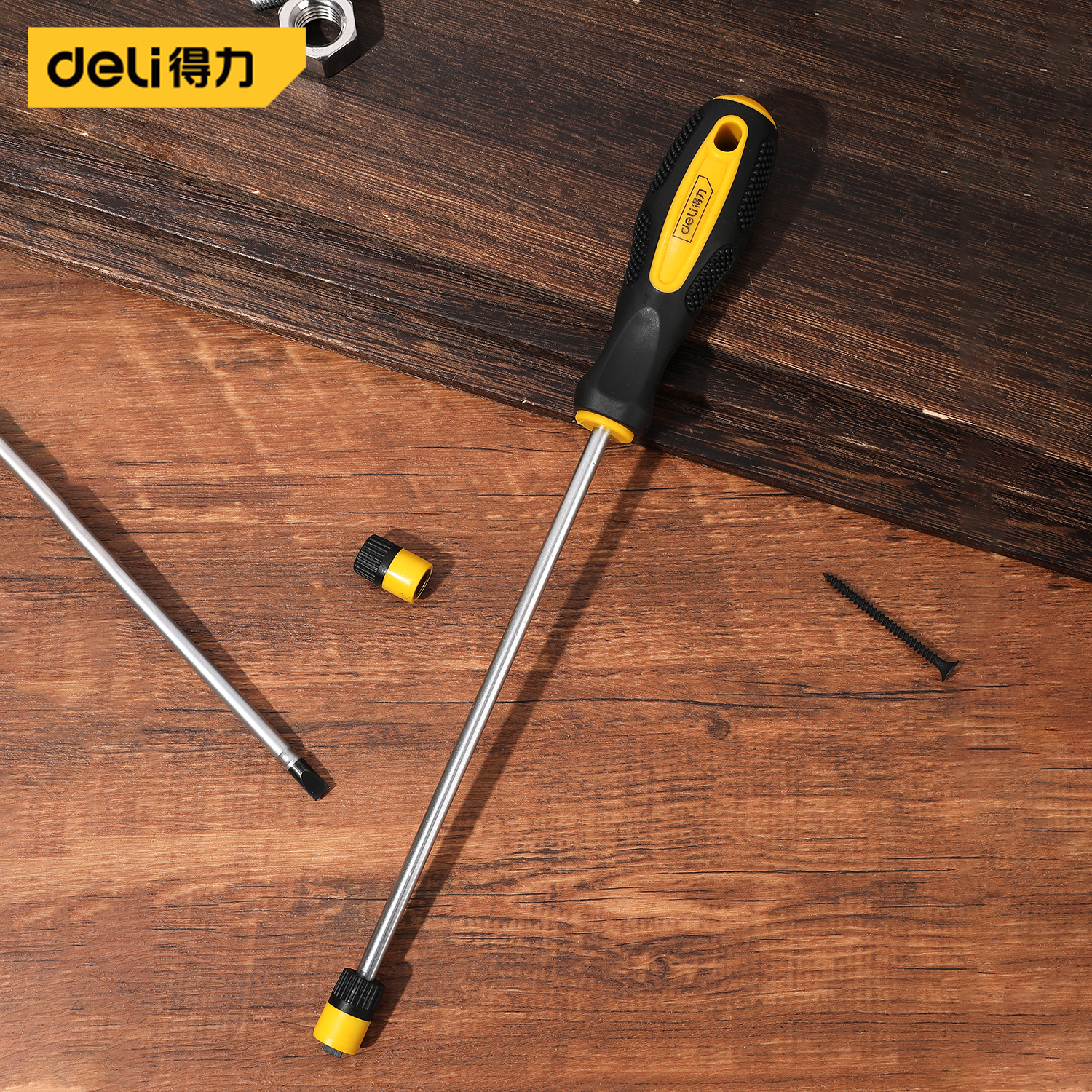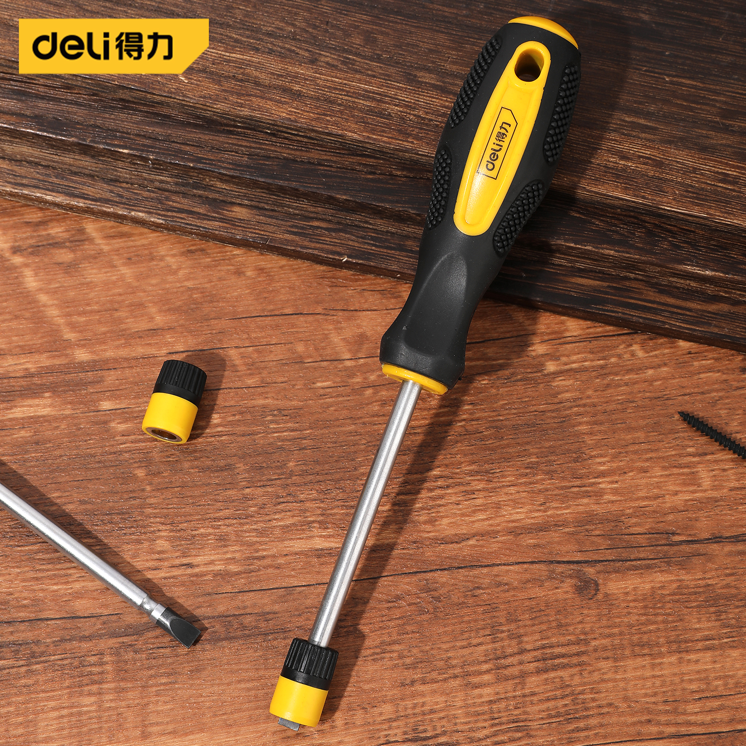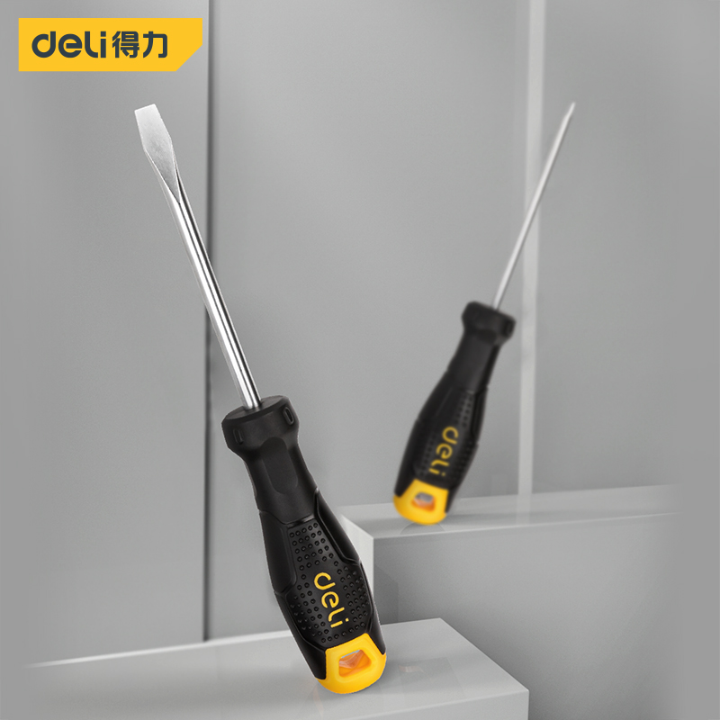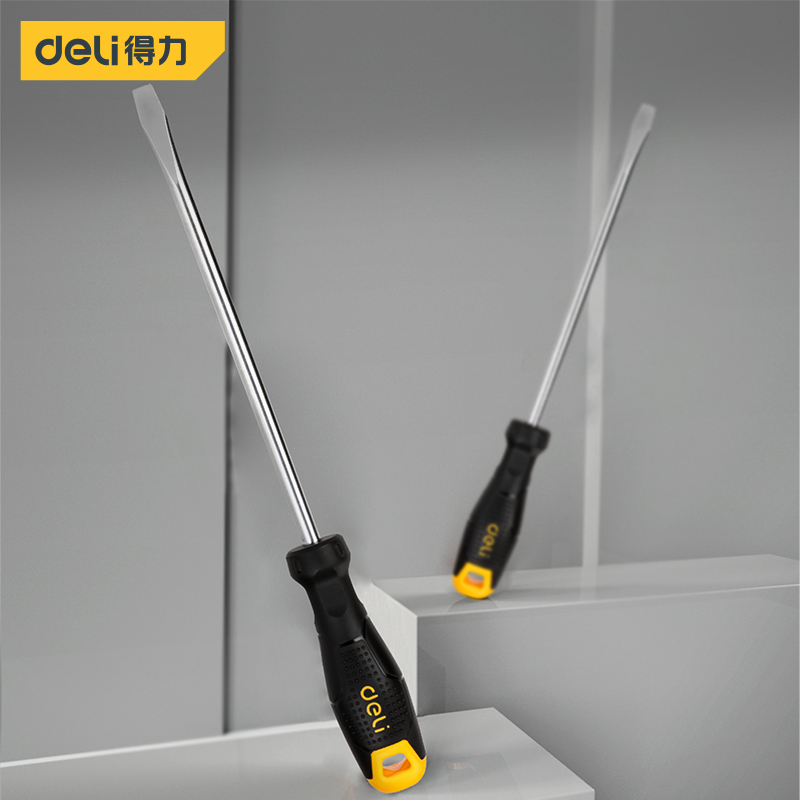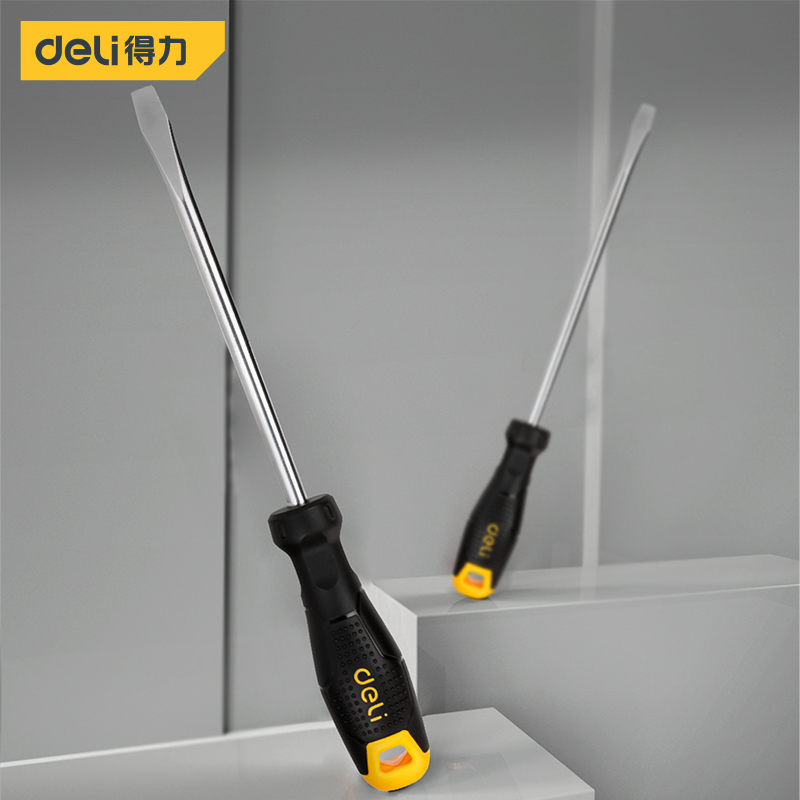 得力工具 一字螺丝批(黄)