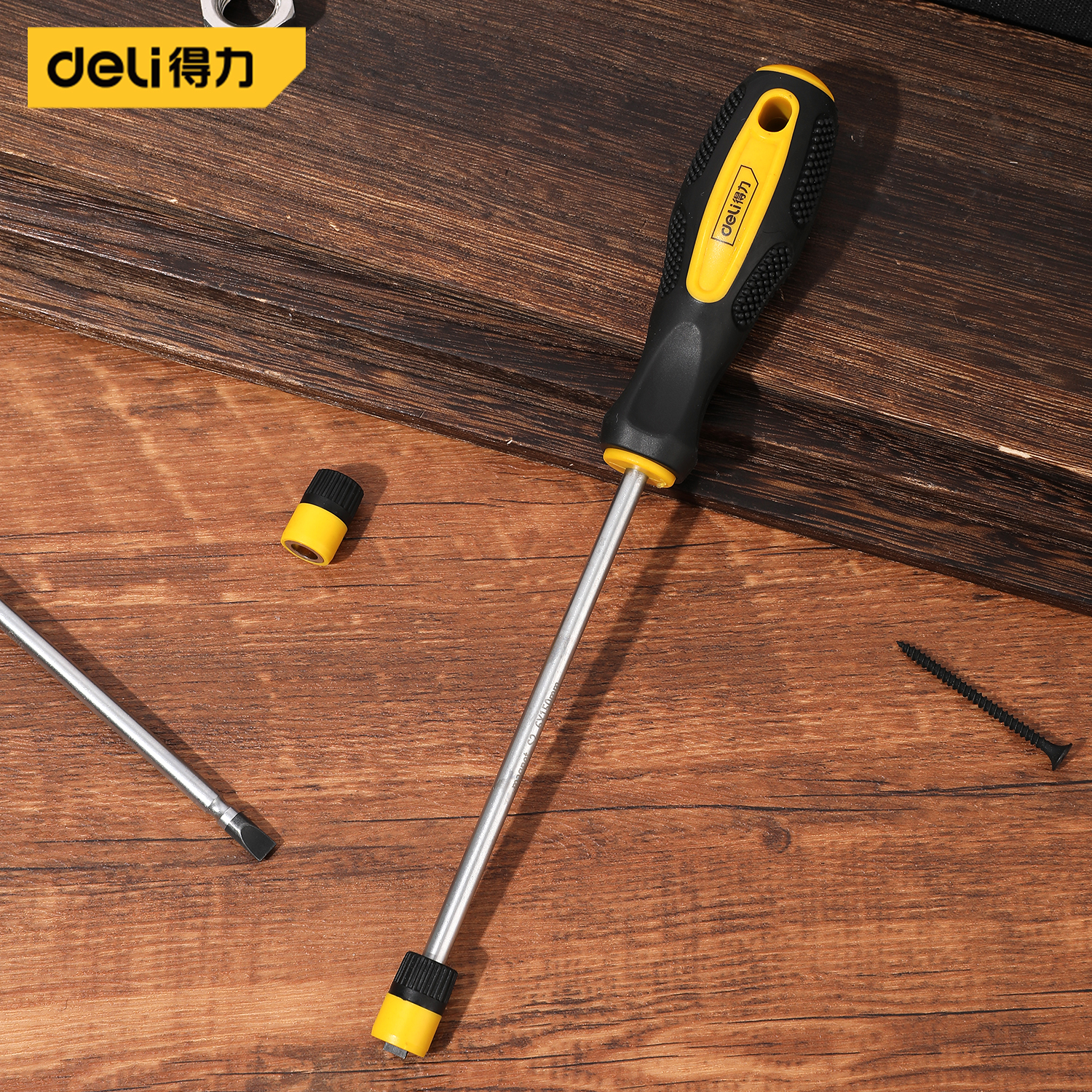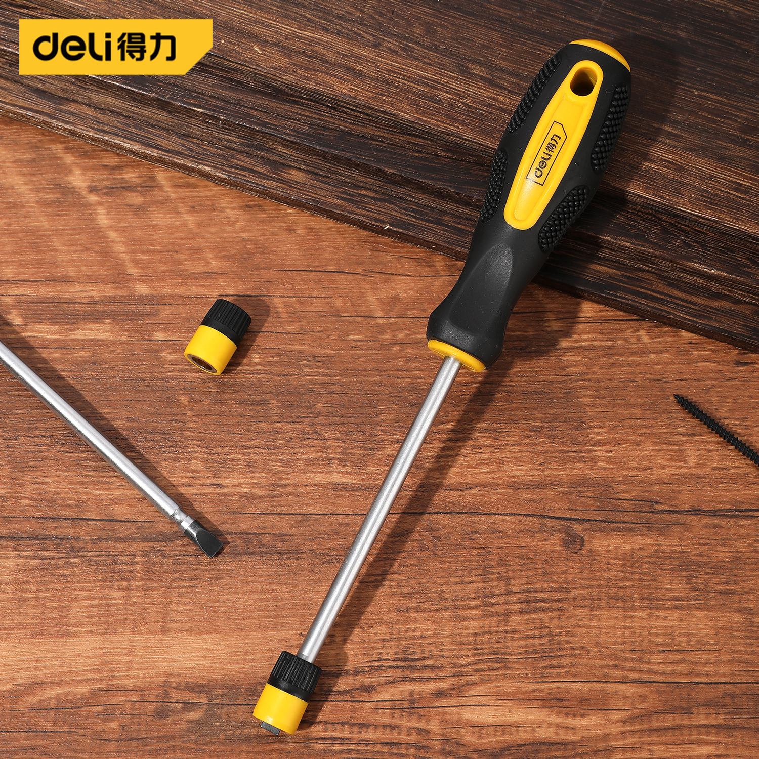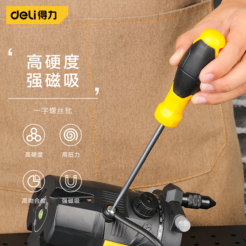 得力工具 磁圈一字螺丝批S2(黄)