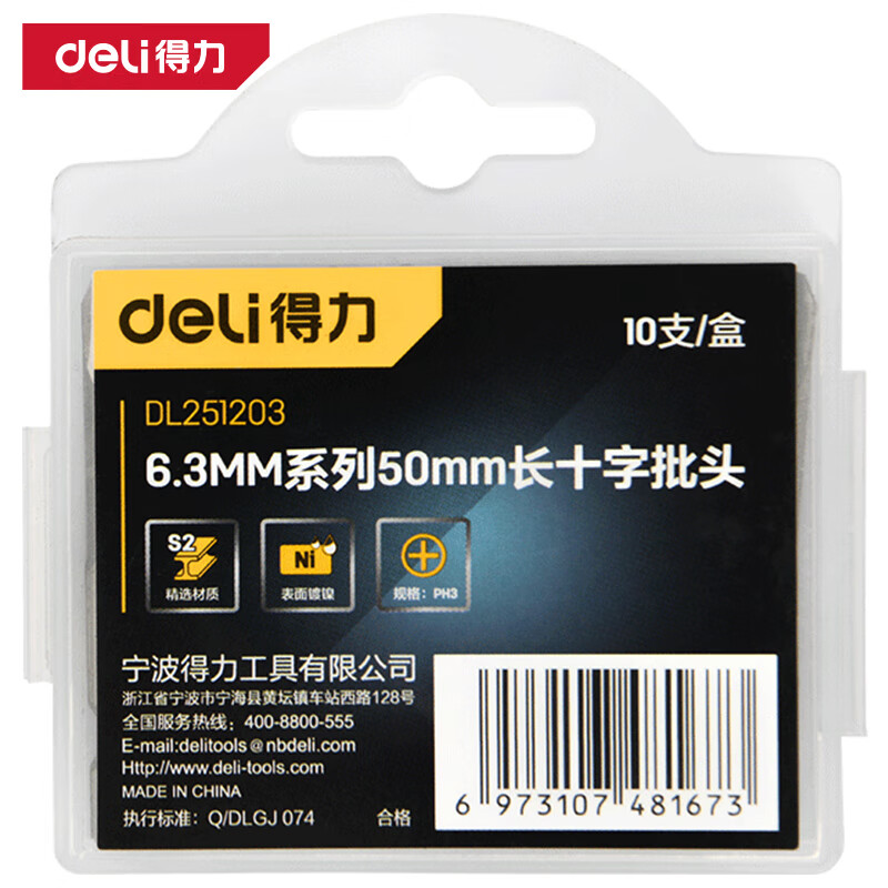 得力工具 6.3mm高扭力一字S2(银)