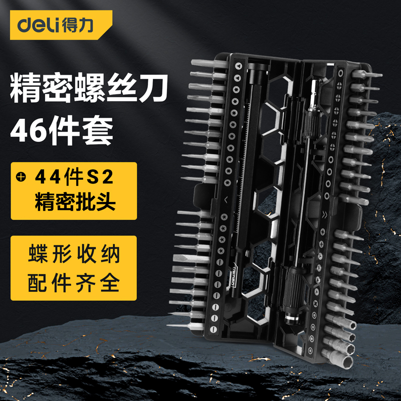 得力工具 精密螺丝刀电子维修S2塑盒(黑)