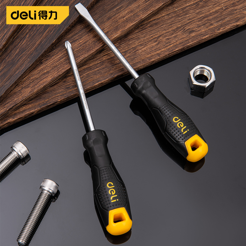 得力工具 螺丝批套装2件套铬钒钢(黄)