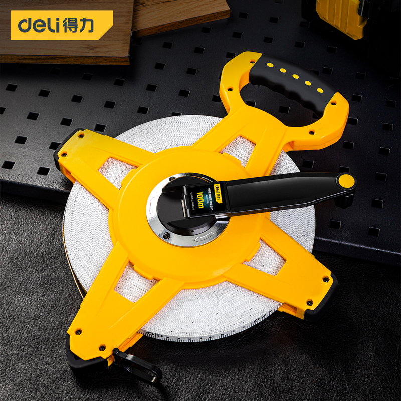 得力工具 架式皮卷尺三倍速塑壳(黄)