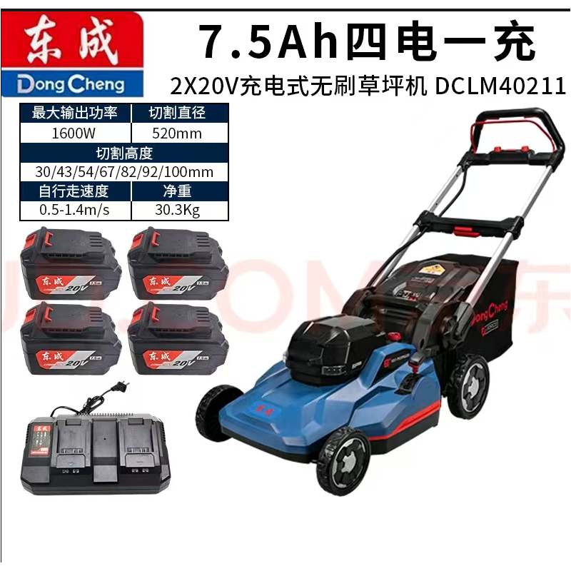 东成 DCLM40211 2x20v充电式草坪机7.5Ah四电一充