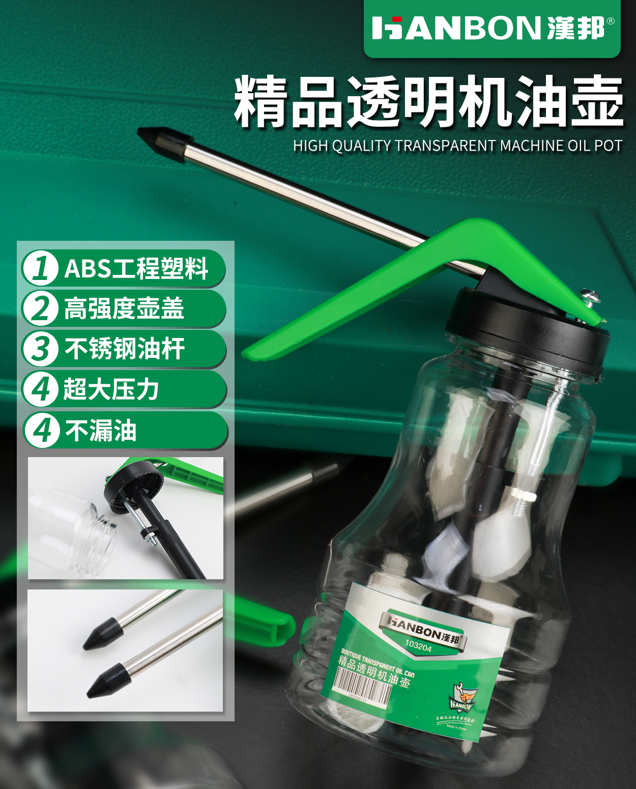 汉邦 103202 专业级透明机油壶 坚固耐用 快速上油 密封性好