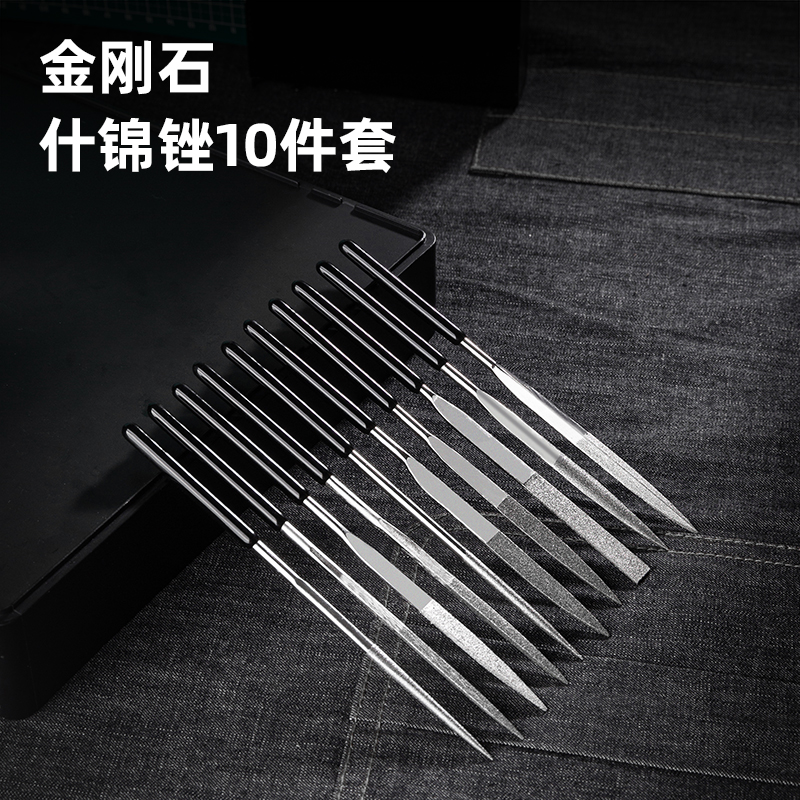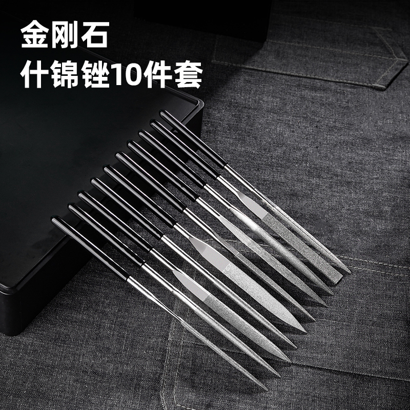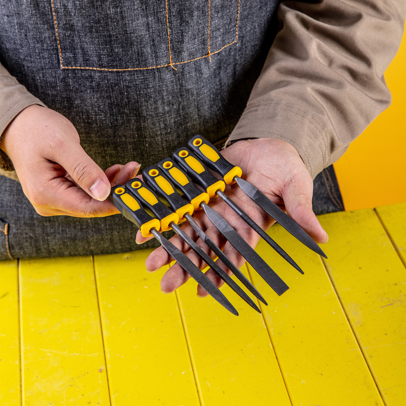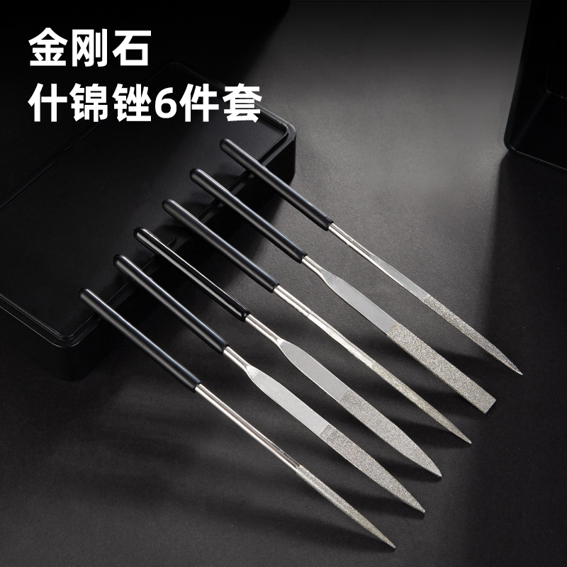 产品介绍 ● 1 件 中齿平锉 8" ● 1 件 中齿半圆锉 8" ● 1 件 中齿方锉 8" ● 1 件 中齿圆锉 8" ● 1 件 中齿三角锉 8" ● 1 件 金刚石平头扁锉 3×140MM ● 1 件 金刚石尖头半圆锉 3×140M