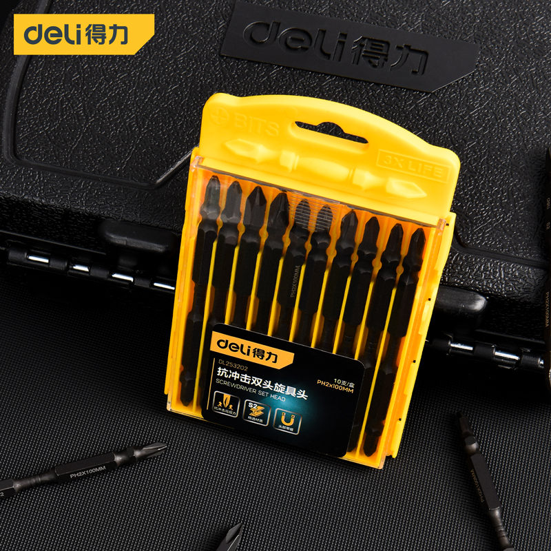 得力工具 6.3mm专业装修型双头旋具头S2(黑)