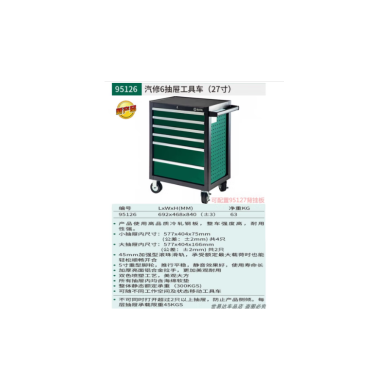 世达工具 95126 汽修抽屉式维修六层小推车移动柜零件车组合柜箱
