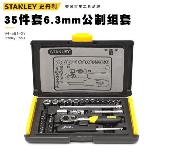 史丹利 小飞套筒套装6.3mm小快速套筒头扳手棘轮飞扳 94-691-22 35件6.3mm公制组套