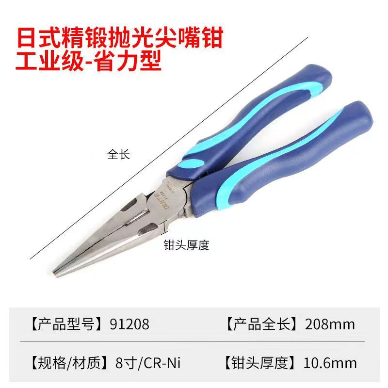奇特工具 91208 8寸/200mm工业级日式精抛光偏心省力尖嘴钳