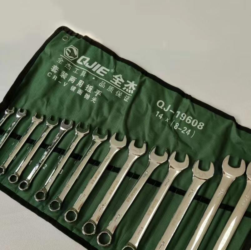 全杰工具 QJ202 镜面14件套两用扳手套装两用扳手 开口扳手 梅花扳手 两用扳手组套