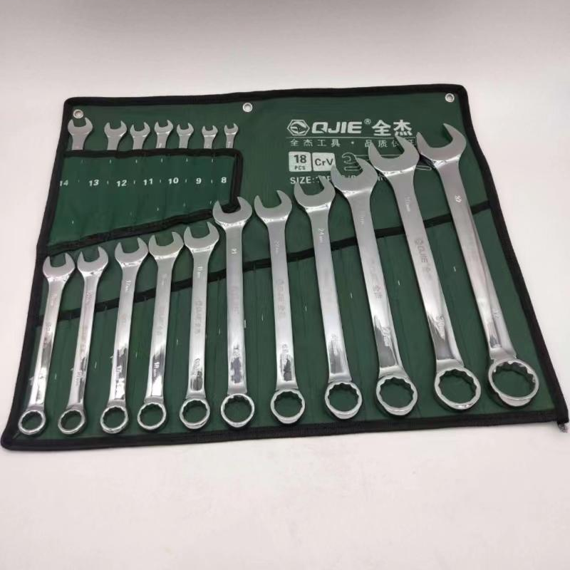 全杰工具 QJ205套装两用扳手 镜面18件套两用扳手 开口扳手 梅花扳手 两用扳手组套