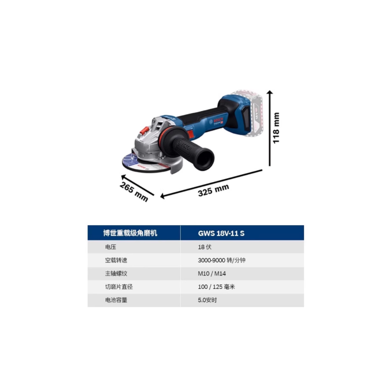 博世 GWS18V-11S 角磨机125MM4.0一电一充