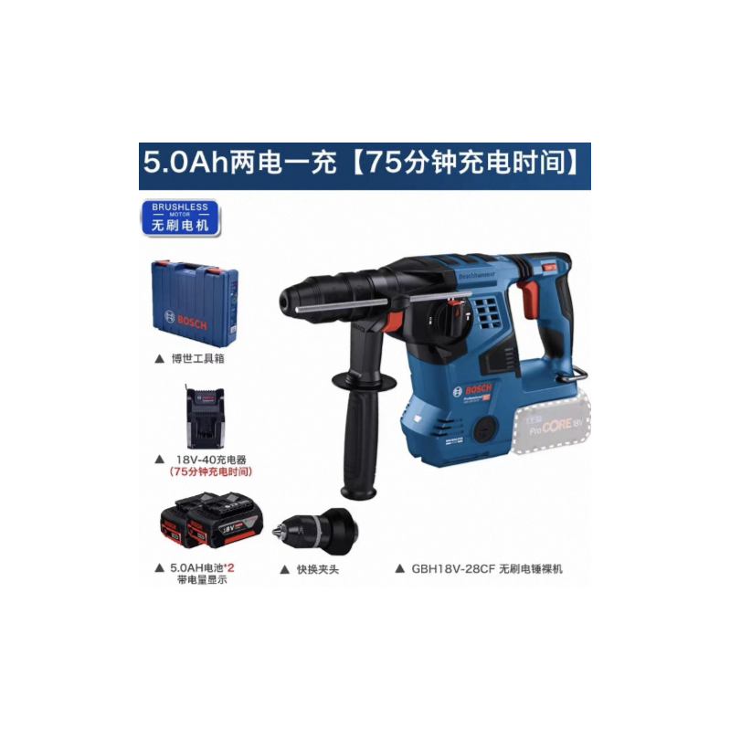 博世 GBH18V-28CF 无刷电锤5.0Ah两电一充