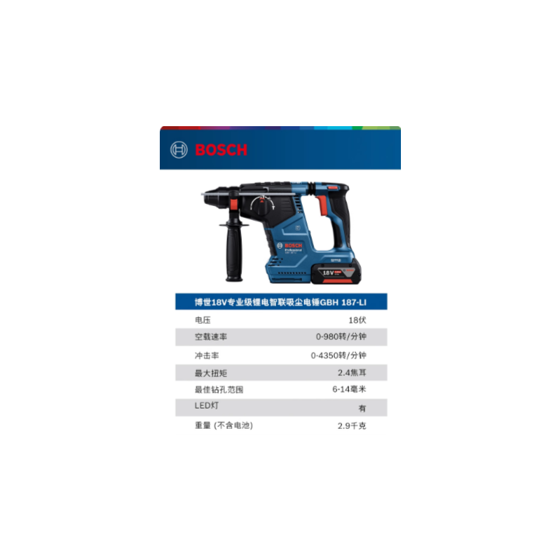 博世 GBH 18v-18 电锤5.0两电一充+钻头附件+防尘罩