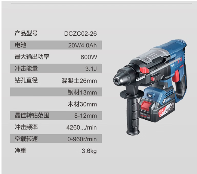东成 DCZC02-26EM 充电式无刷电锤