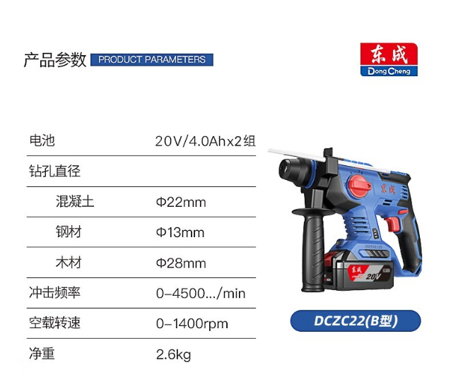 东成 DCZC22B 锂电电锤4.0双电