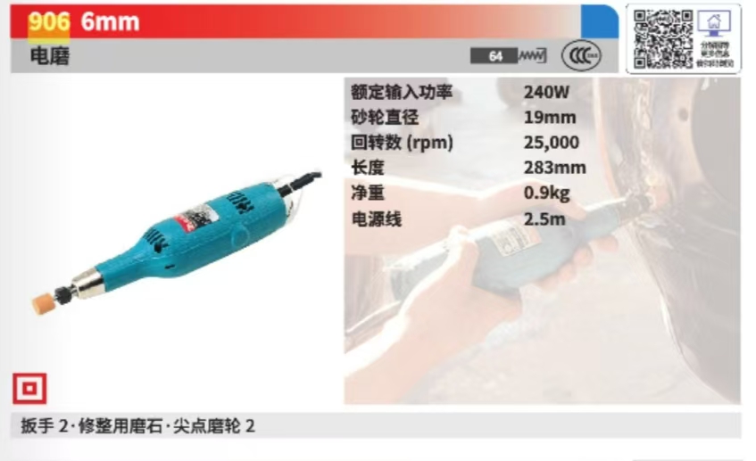 牧田 906 直磨机电磨机打磨机打磨抛光内磨雕刻工具220v夹筒6mm