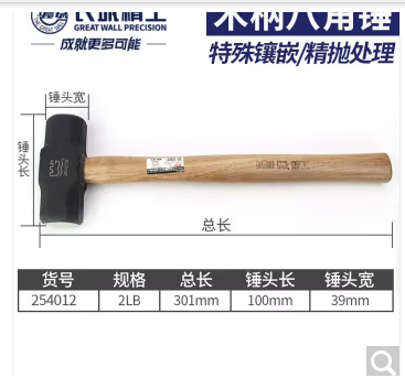 长城精工 254012木柄八角锤2LB