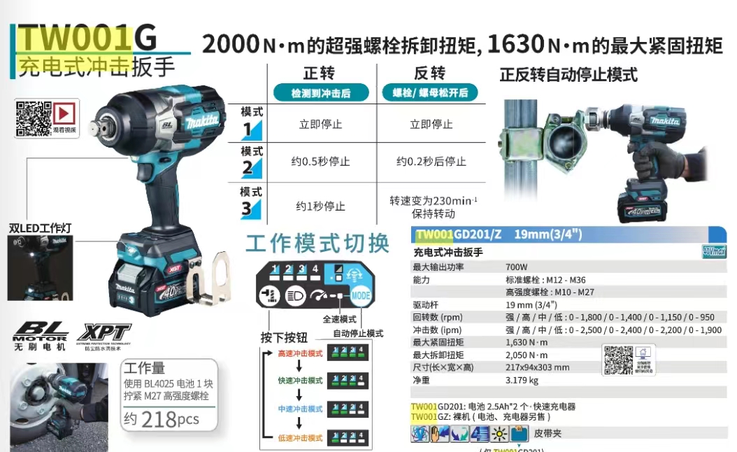 牧田 TW001GZ 一充两电40V5.0电池充电式电动扳手
