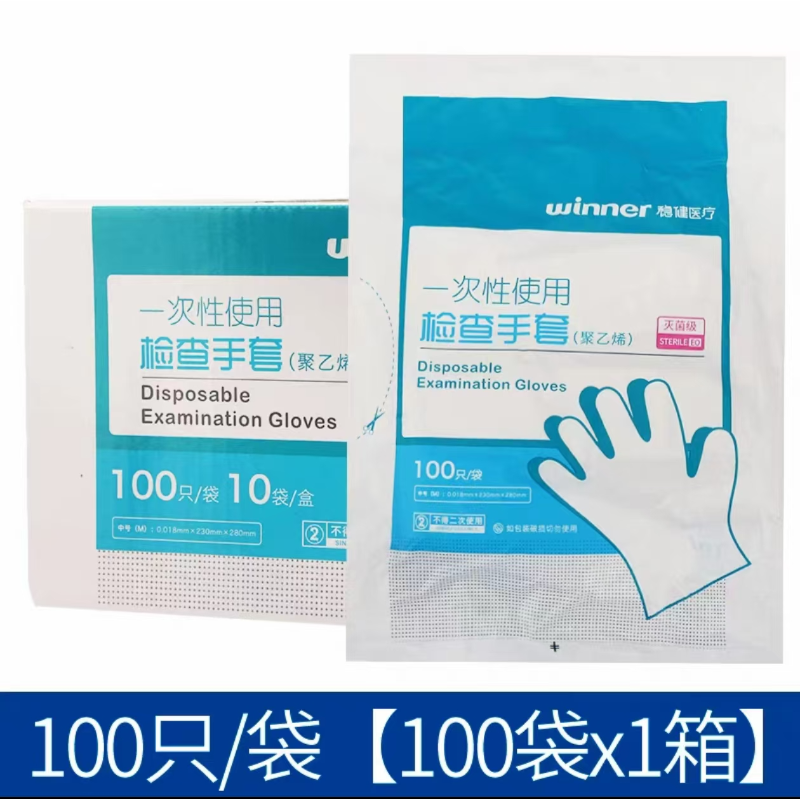 稳健 一次性检查手套无菌 PE(100只/袋)