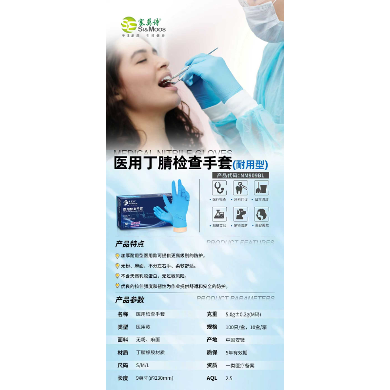 塞莫诗 一次性医用丁腈检查手套 耐用性(100只/盒)