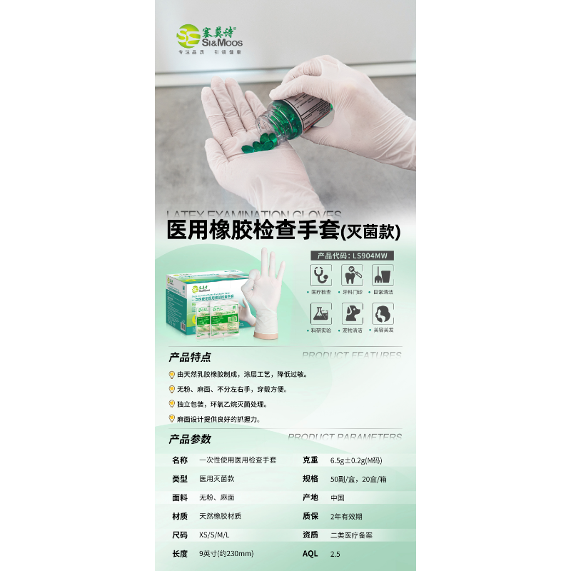塞萸诗 一次性医用橡胶检查手套 无粉麻面