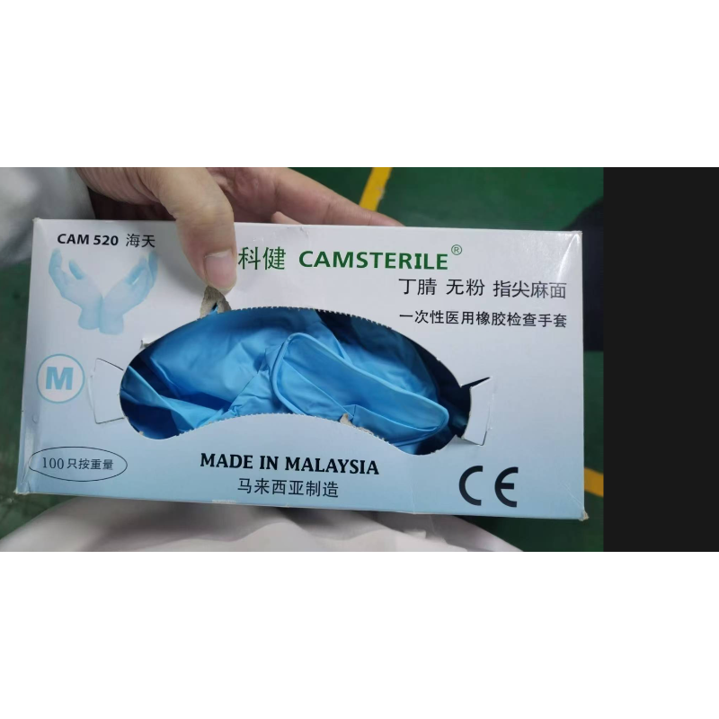 康科健 CAM520海天 一次性医用橡胶检查手套丁腈无粉麻面