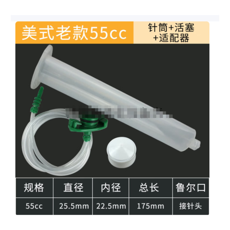 勋狸粑 55CC含活塞含适配器三件套透明 美式点胶针筒塑料针筒点胶机针筒点胶机配件点胶针管气动针筒