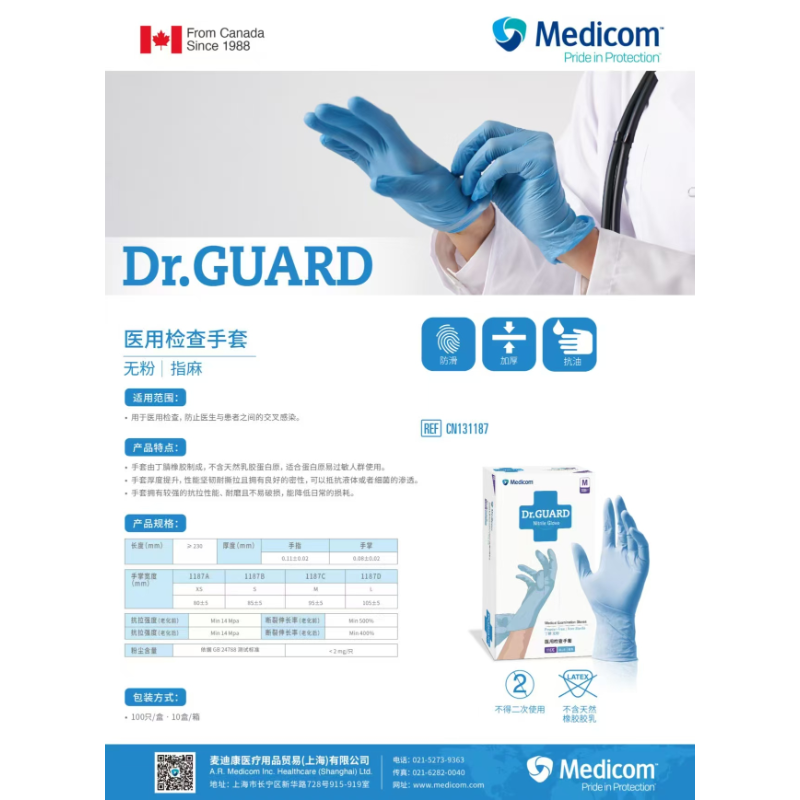 麦迪康 DRG-CN131187D 加强型丁腈手套无粉大号蓝(100只/盒)
