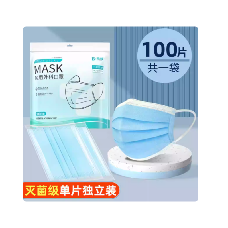 麦迪康 PMR0C2015M-0100050 普通医用口罩三层蓝耳挂式非独立(50只/盒)