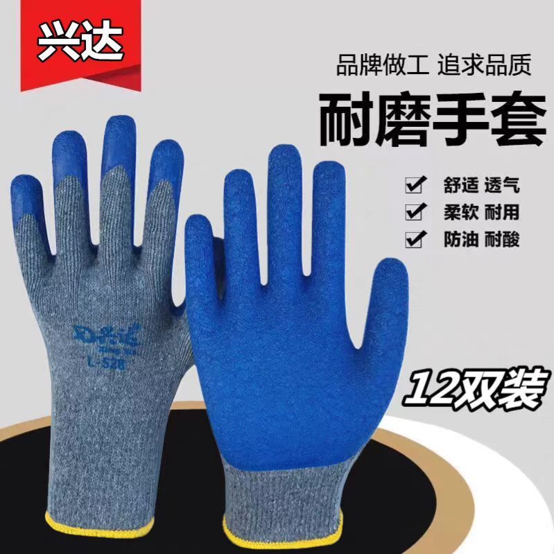 兴达 L528 纱线皱纹手套 灰纱蓝 胶