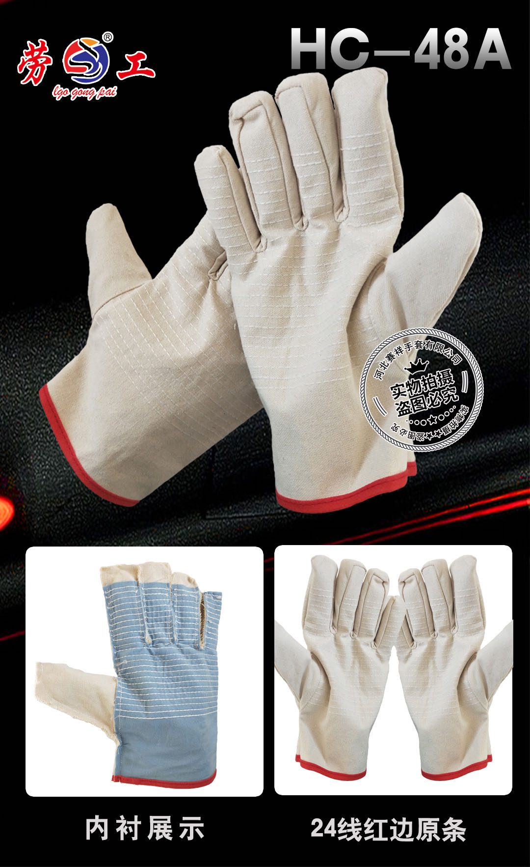 劳工 HC-48A 帆布手套纯棉全衬24线红边原条
